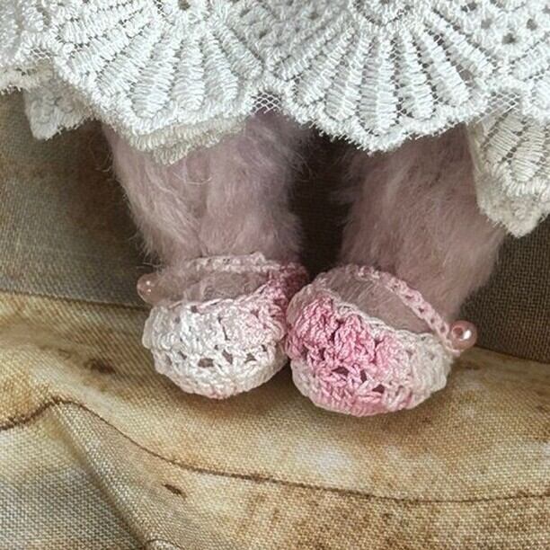 出展用に『Baby bear 003 ピンク』にレース編みの衣裳を作りました。